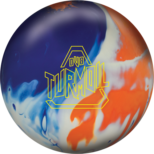 The Turmoil Solid is one of the most unique looking balls in bowling. The orange, blue, and white pattern is made of the Composite Hook coverstock, the same cover used on in the Creed and Vandal lines can be noticed from a mile away, especially with the amount of hook it creates and the way it sends pins flying.